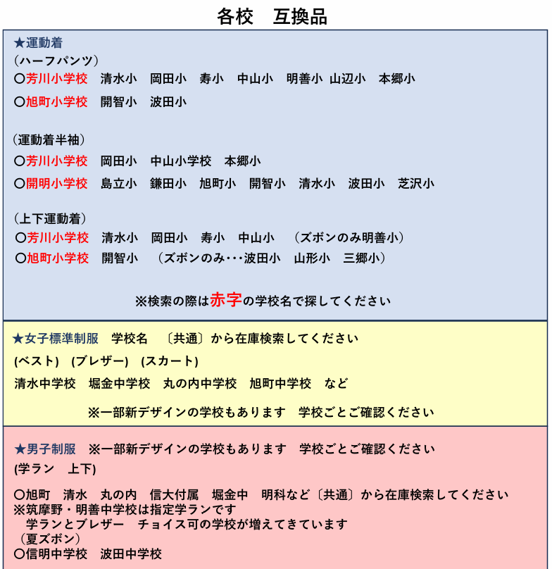 出来る限り各学校の最新情報を収集して販売致しますが、ご自身でも現行のものであるか確認の上購入をお願いいたします。